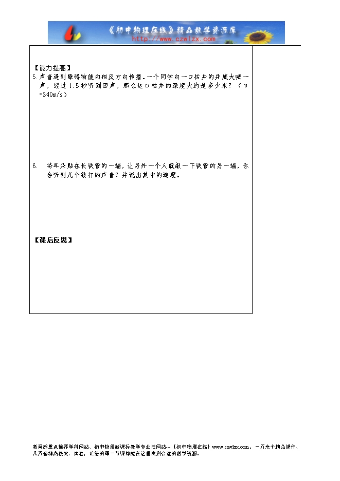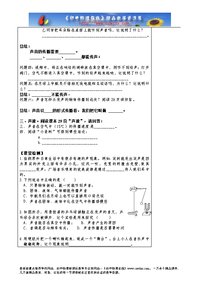3.知道声 音传播需要介质,声音在不同介质中传播的速度不同。