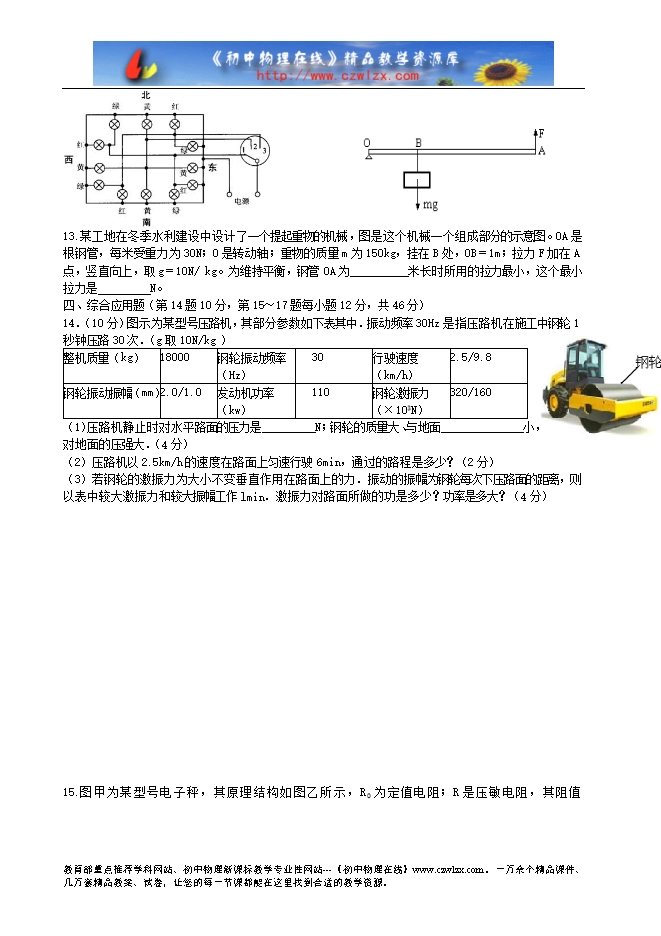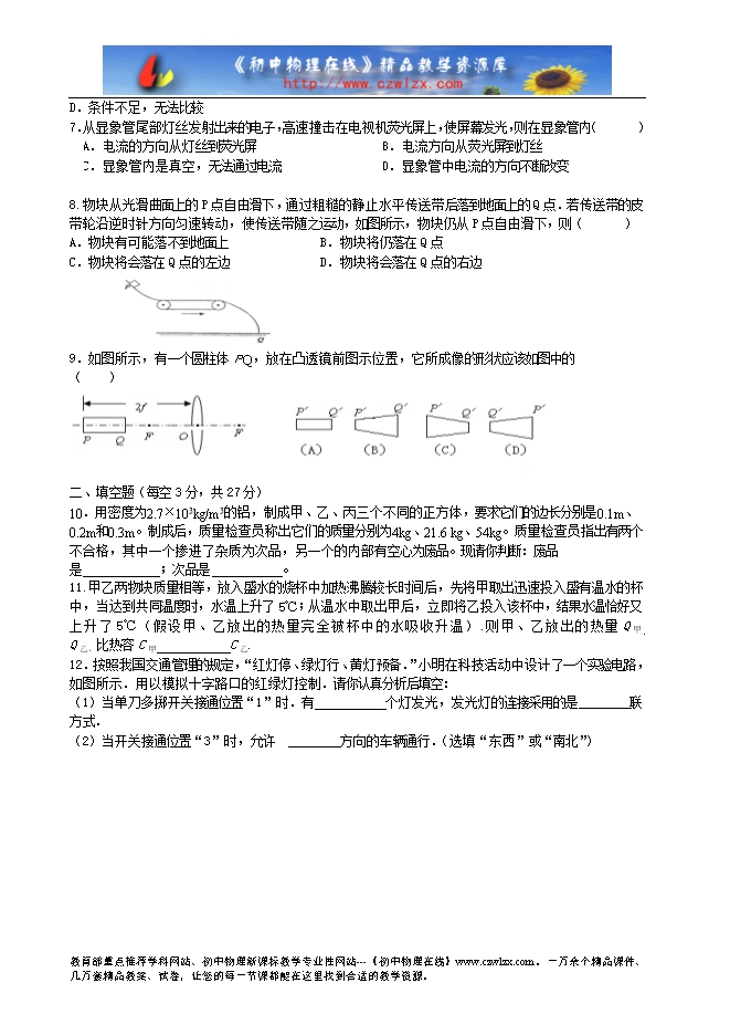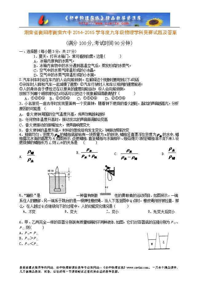 湖南省衡阳市衡南六中2014-2015学年度九年级物理学科竞赛试题及答案