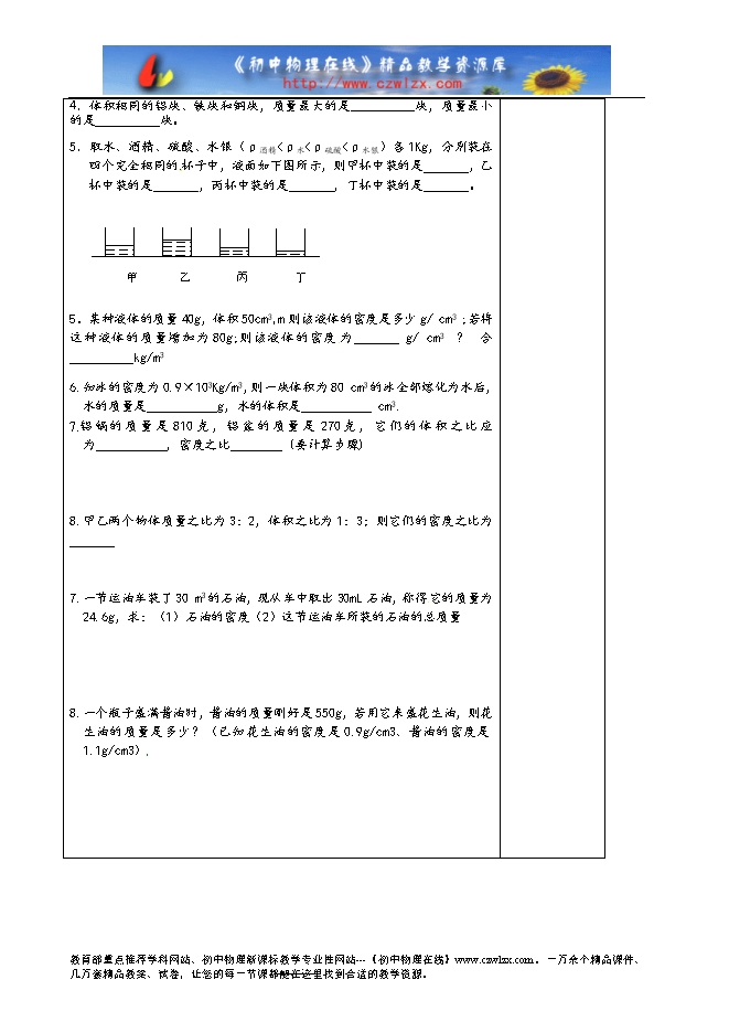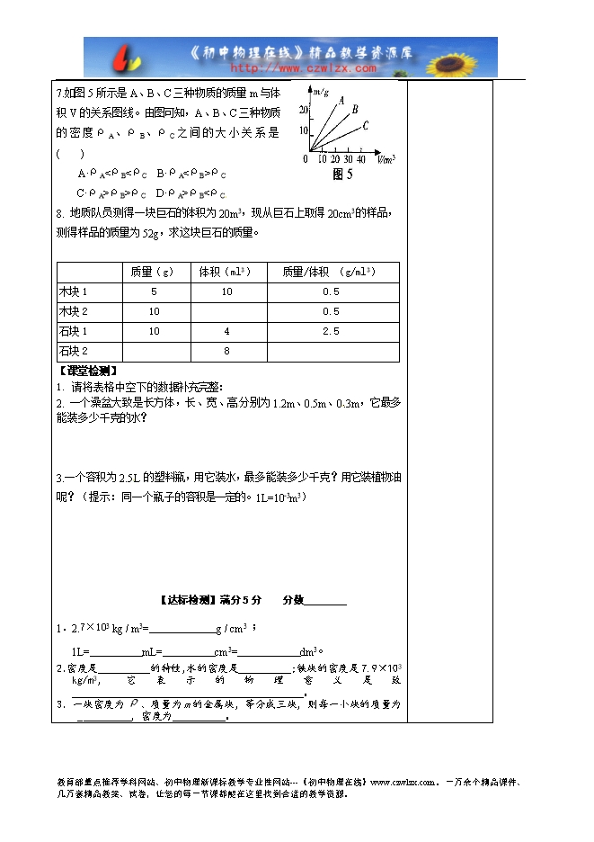1.强化对密度的定义、公式、单位和物理意义的理解;