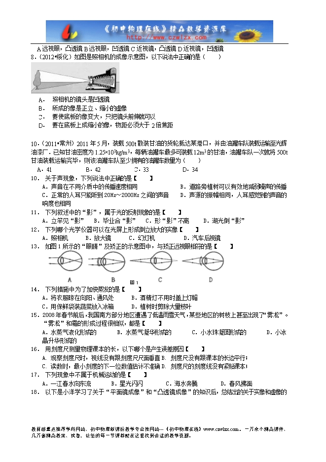 - 1754江苏省扬州市江都区2014-2015八年级上学期期末模拟物理试题及答案