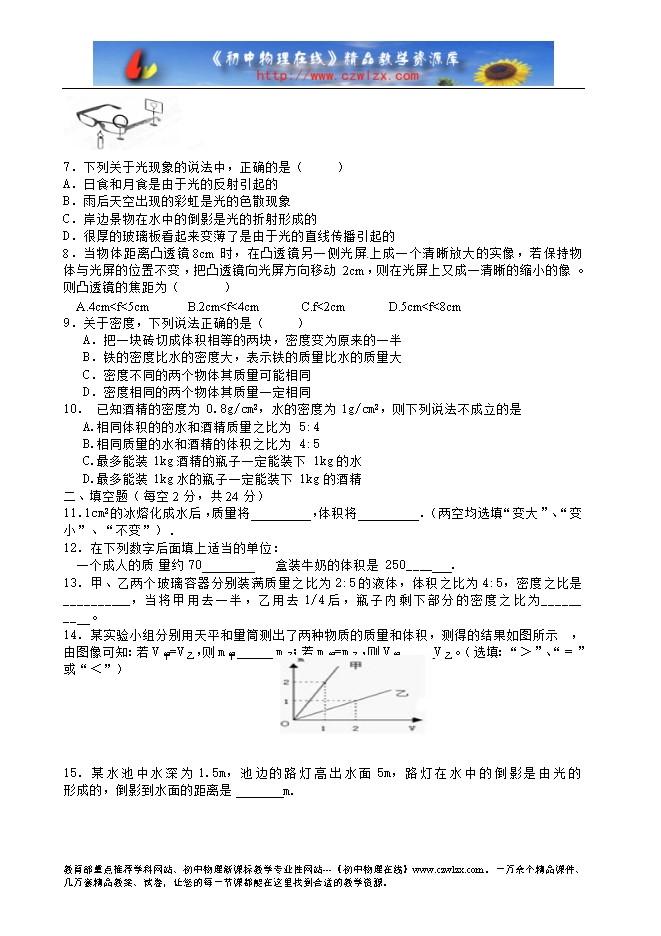 - 2531内江市2014-2015学年度第一学期八年级期末考试物理试题及答案(教科版第一章一第六章)