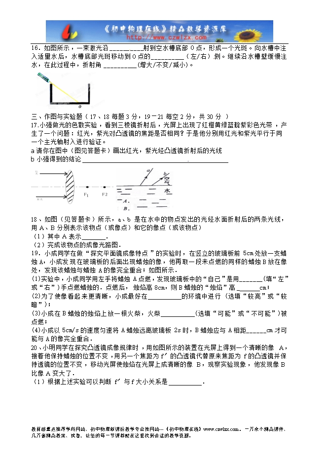 - 2804北京市朝阳区2014~2015学年度八年级第一学期期末检测八年级物理试卷及答案(选用)