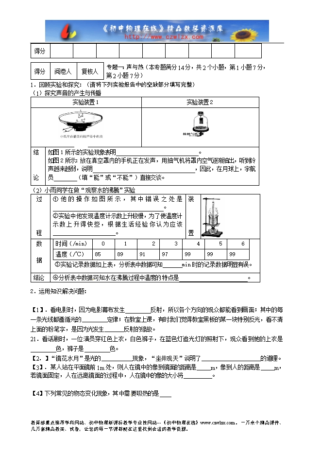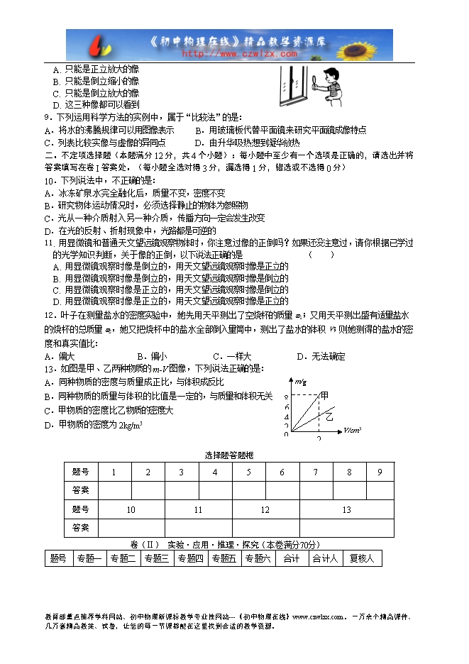 3.本次考试设书写分按3分、2分、1分计入总分卷(Ⅰ) 现象?实验?结构?方法(本卷满分30分)