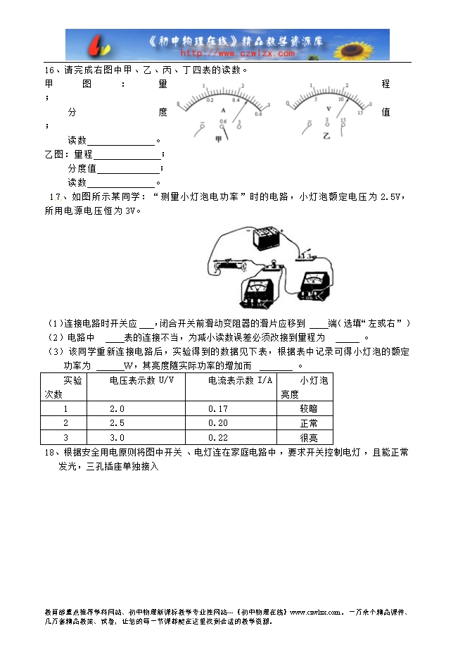 - 1728山东省济宁实验中学2014-2015学年度第一学期期末考试九年级物理试卷(无答案)
