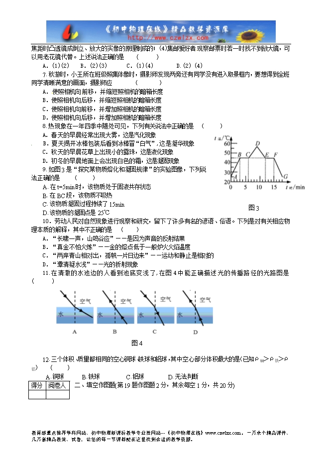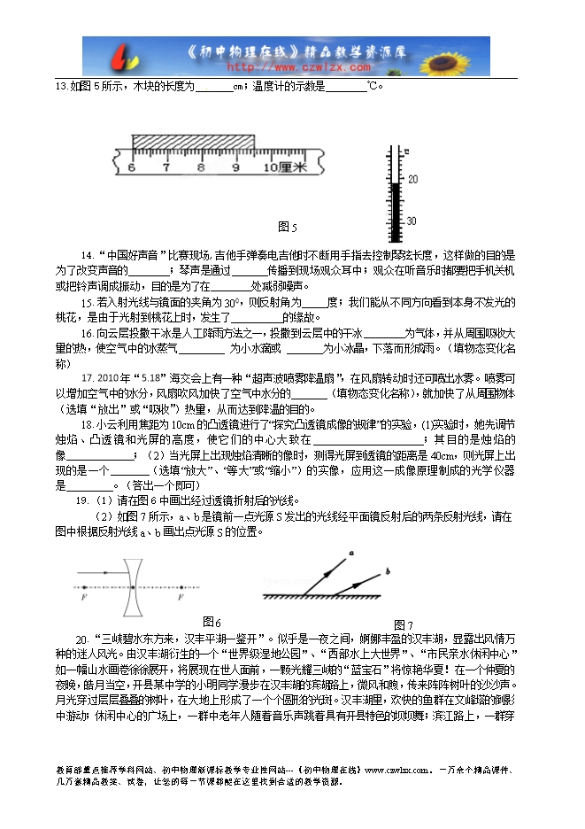 - 2531内江市2014-2015学年度第一学期八年级期末考试物理试题及答案(教科版第一章一第六章)