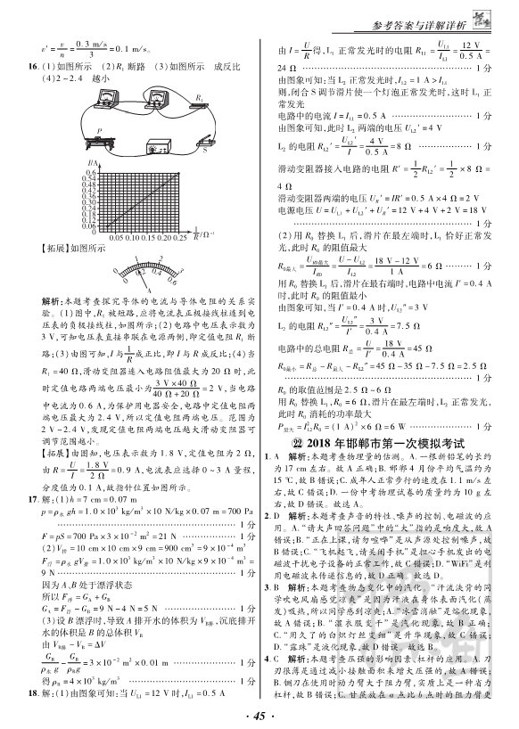(1) 要校零,即在测量前要使指针对准零刻度线;