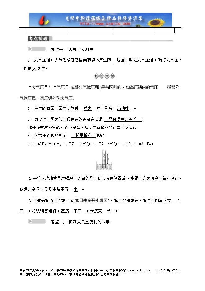 , 考点一) 大气压及测量