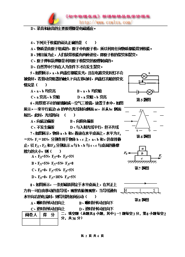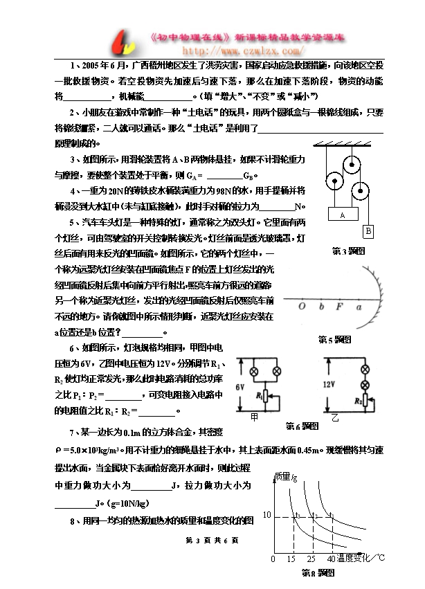 - 下一份试卷:2006年某重点高中保送生考试物理试卷及解答