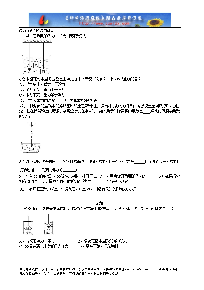 2.鸡蛋在清水中下沉,在盐水中上浮我们猜测物体所受浮力可能与___________有关。