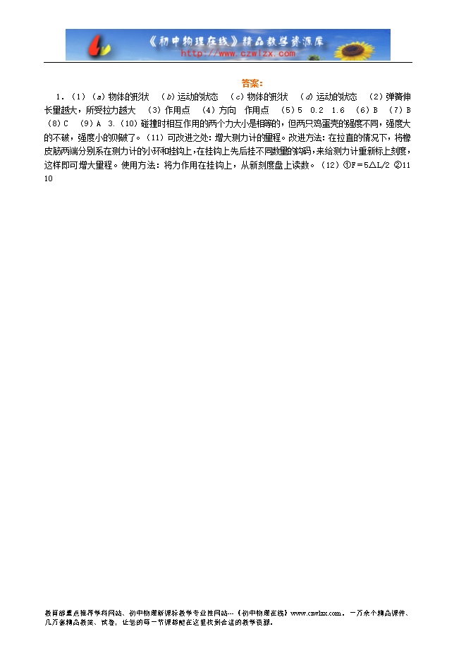(1)力作用在物体上可以产生两种效果,在下列各题后的横线上填上属于哪种效果