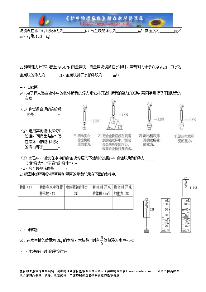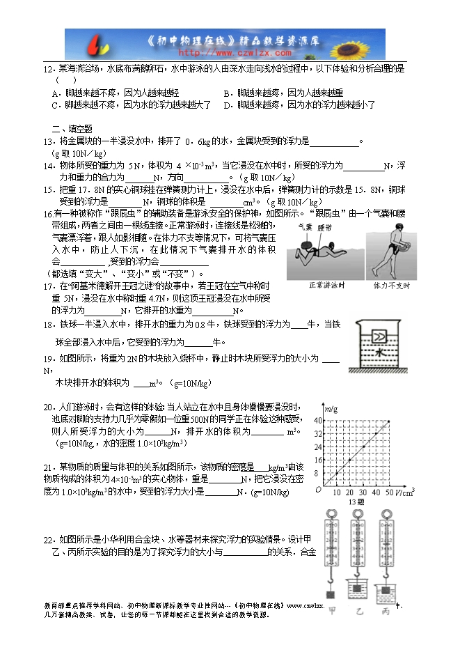 6.将两个物体分别挂在弹簧测力计上,然后都浸没在水中,发现两支弹簧测力计的示数都减少了2N,那么这两个物体一定有相同的( )