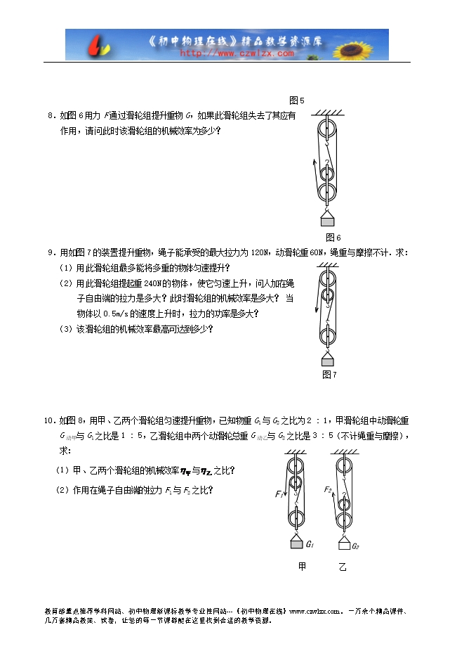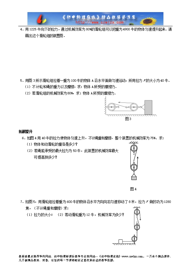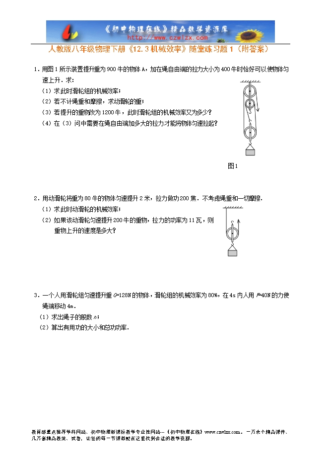 【内容简介】1.用图1所示装置提升重为900牛的物体A,加在绳自由端的拉力大小为400牛时恰好可以使物体匀速上升.求: