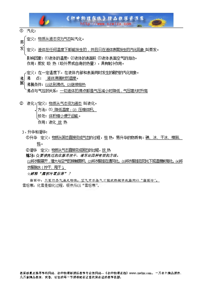 - 343安徽省线上教育资源:初中物理人教版八年级《第三章 物态变化 复习课》示范课视频(程良春)