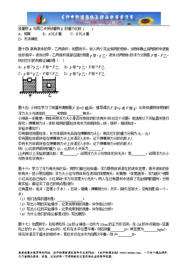 题二:下列关于浮力的有关说法中,正确 的是( )
