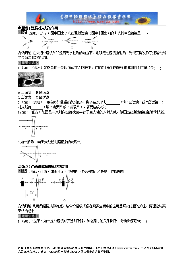 【提示】凸透镜表面越凸,焦距越短,折光能力越强.