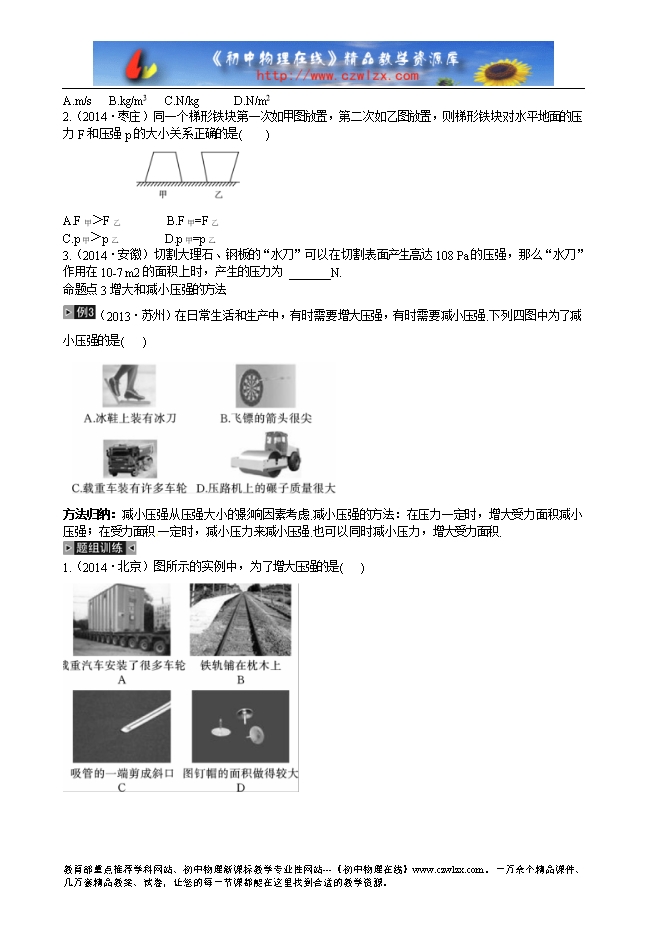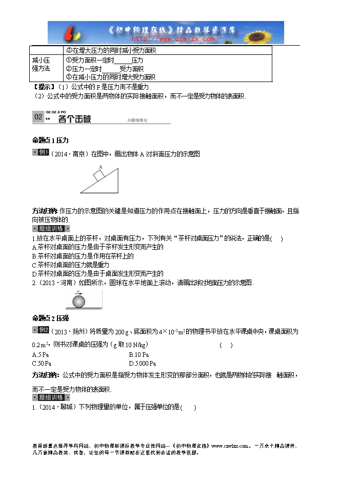 方向 压力的方向总是________于物体的受力面,指向受力物体的内部