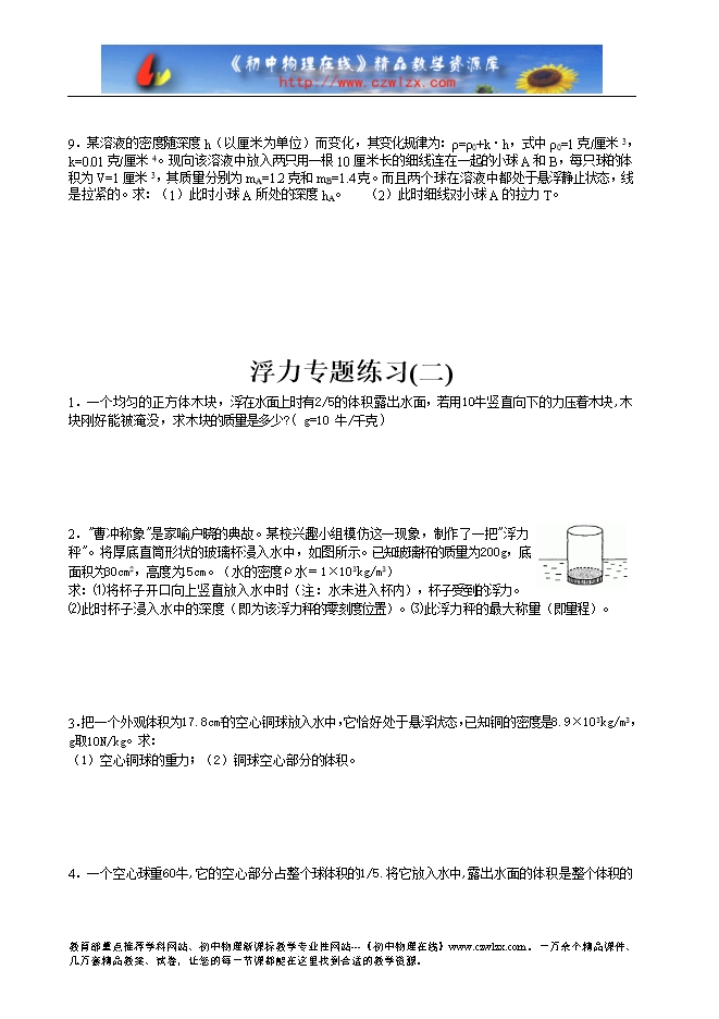 浮力专题练习(一)