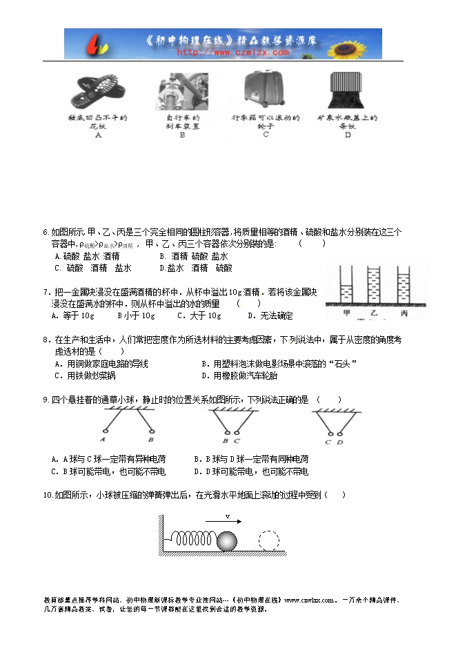 1.在下列数据中,最接近生活实际的是 ( )