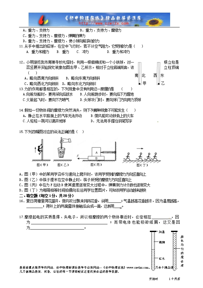 - 2225安徽省阜阳市2015-2016学年八年级下学期期中考试物理试题(解析版)