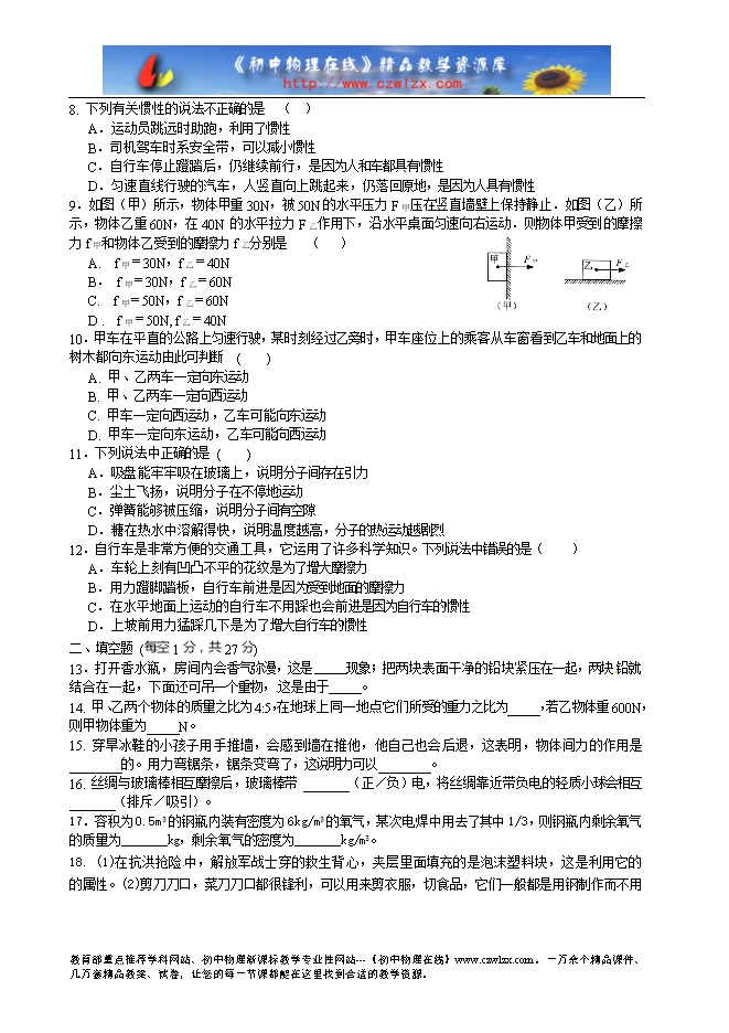 - 2225安徽省阜阳市2015-2016学年八年级下学期期中考试物理试题(解析版)