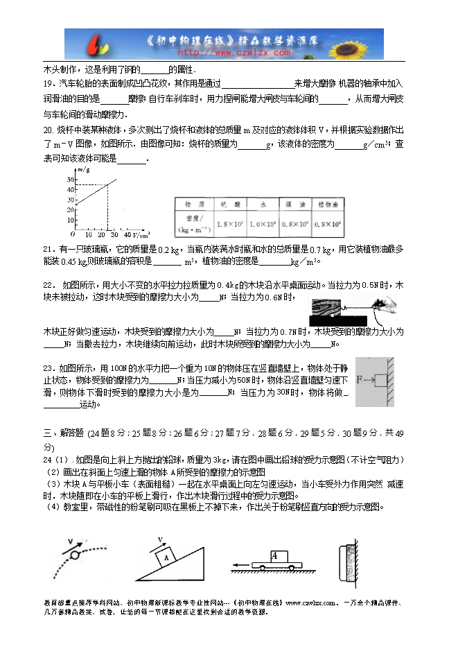 3.有一体积为30 cm3的均匀固体,用天平测得它的质量为237 g,则