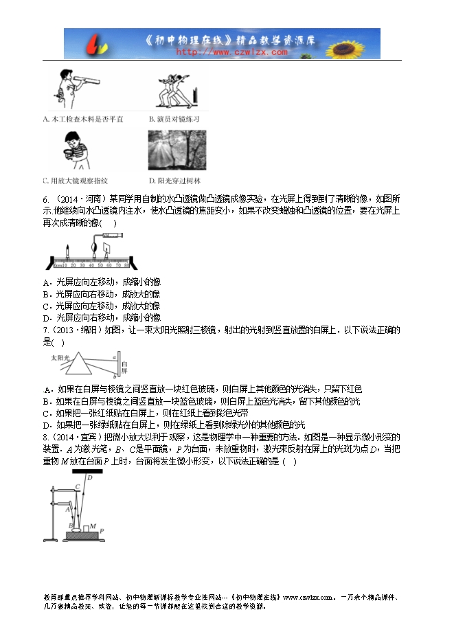 5.(2014?呼和浩特)下列现象中,属于光的反射现象的是( )
