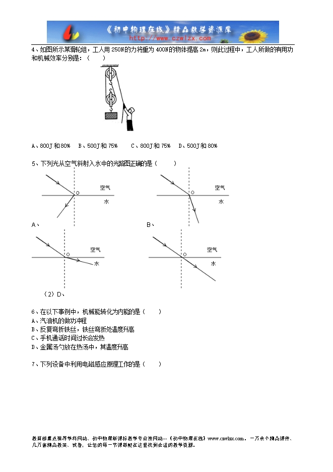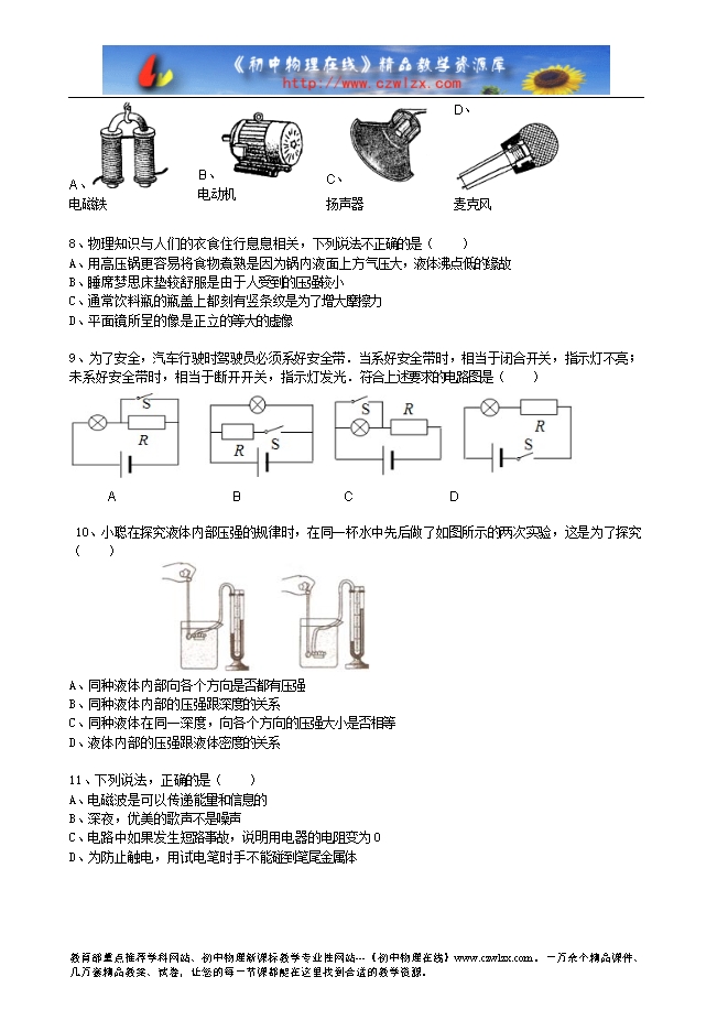 - 下一份试卷:2015年山西中考模拟百校联考物理试卷(一,无答案)