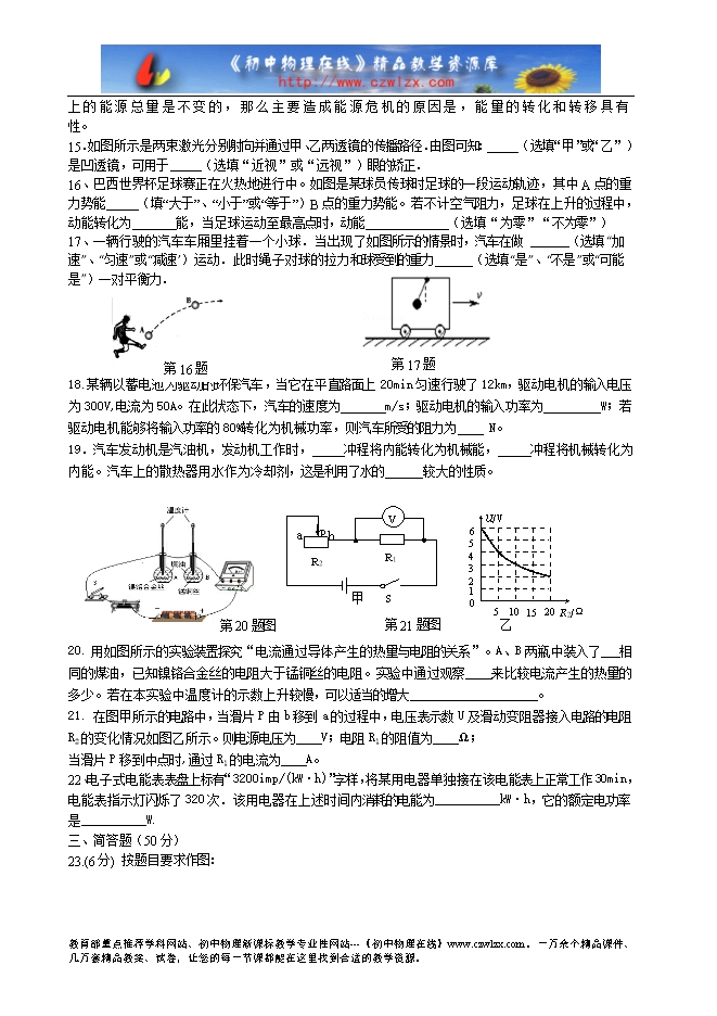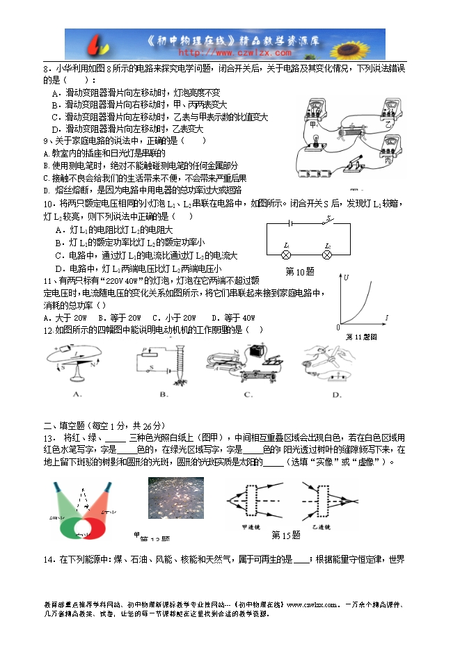 江苏省扬州市梅苑双语学校2014-2015年度九年级一模物理试卷及答案