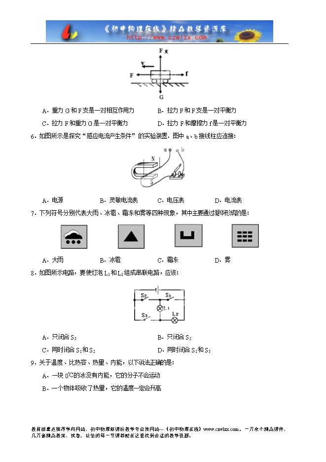C.拉力F和重力G是一对平衡力 D.拉力F和摩擦力f是一对平衡力