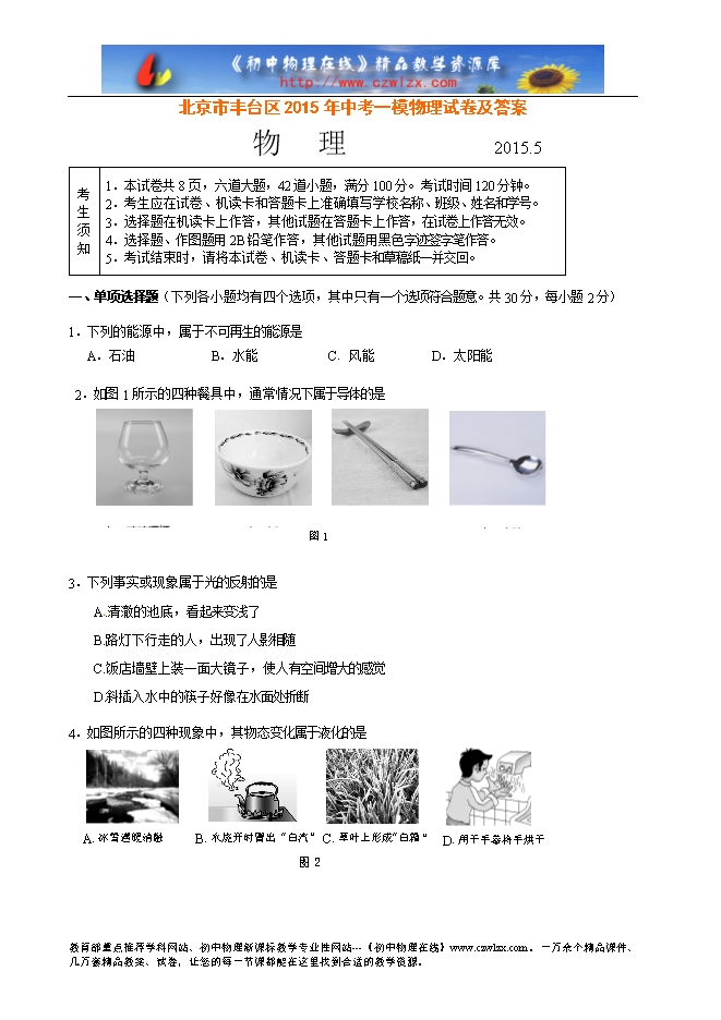 - 下一份试卷:北京市朝阳区2015年中考一模物理试卷及答案