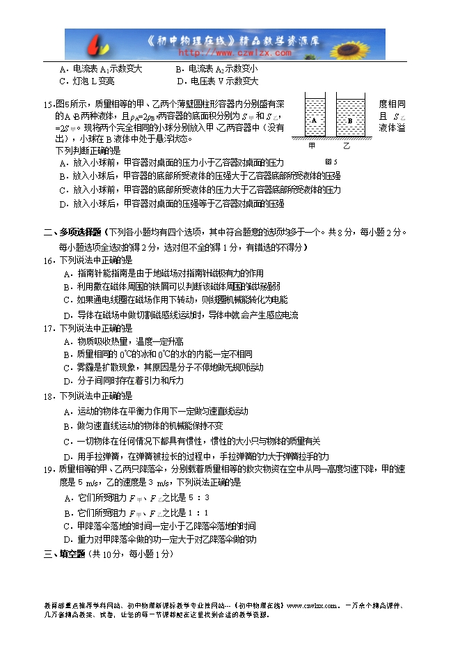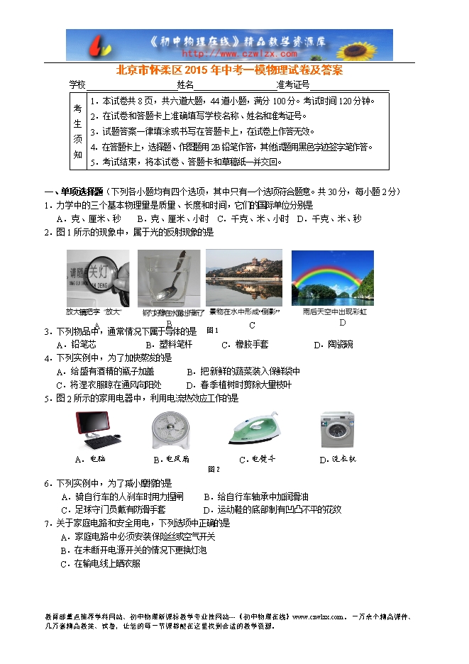 - 下一份试卷:北京市顺义区2015年中考一模物理试卷及答案