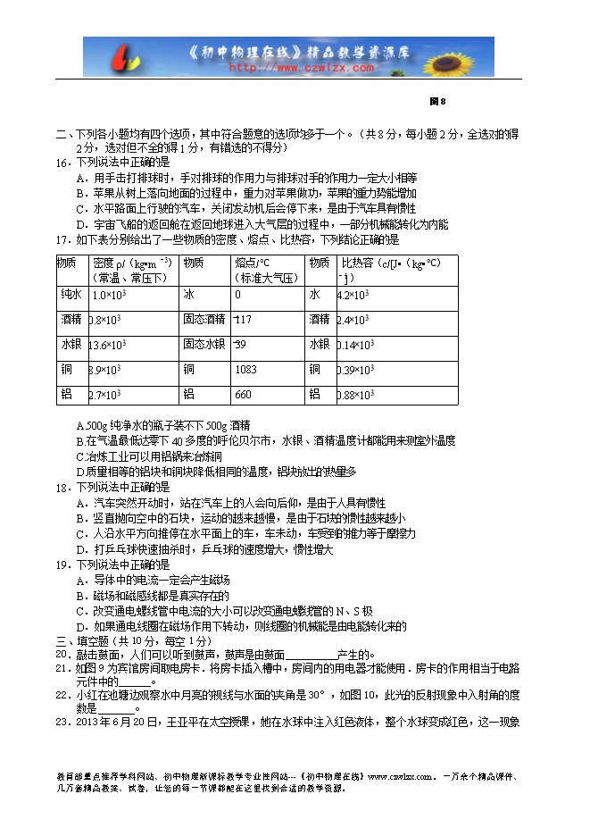 8.有一种手摇式手电筒,握住手电筒来回晃动就能使灯泡通电发光,表明手电筒内部有
