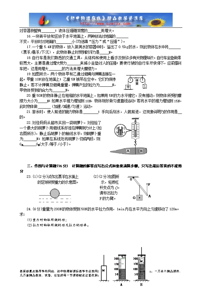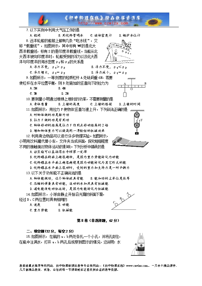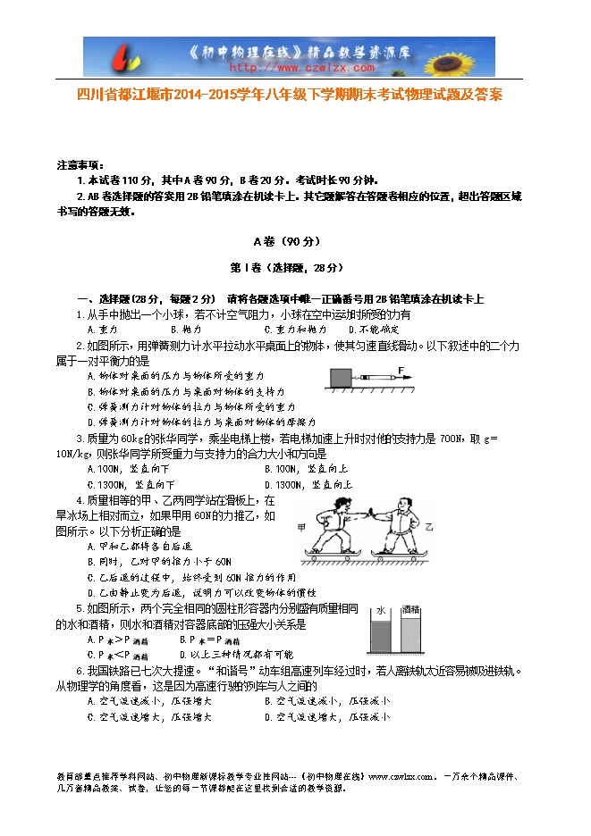 四川省都江堰市2014-2015学年八年级下学期期末考试物理试题及答案