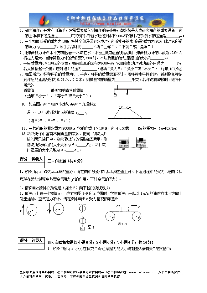 6. 一艘船从东海驶入黄浦江时,船受的浮力将会 ( )