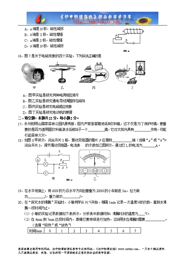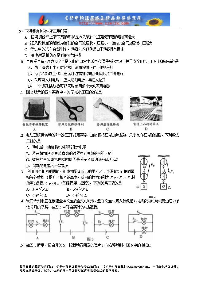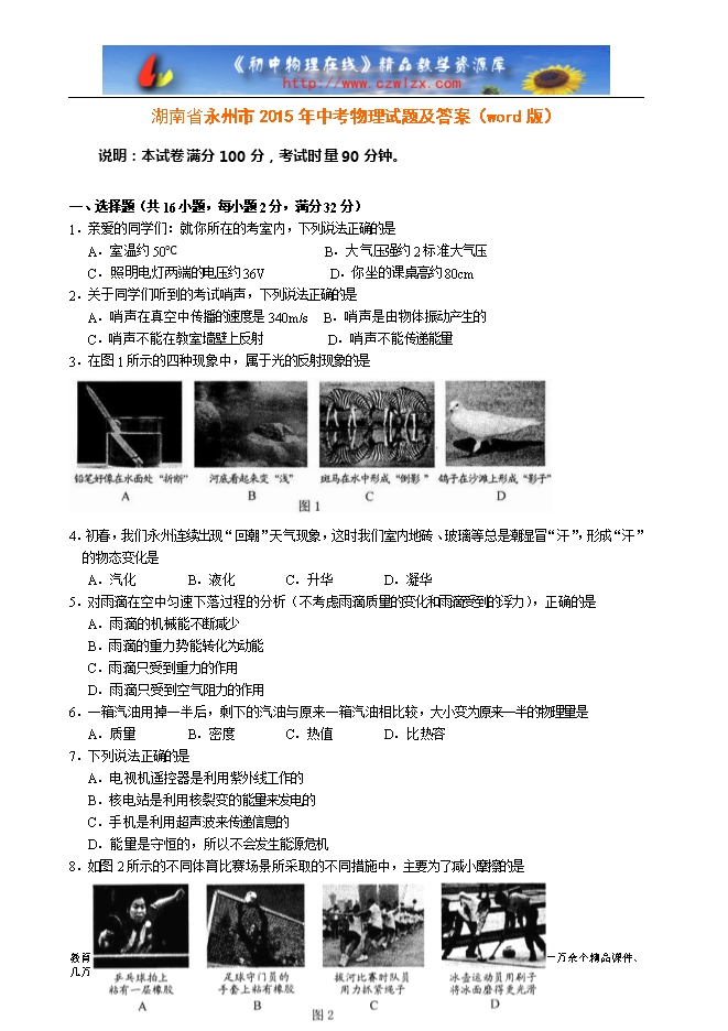 湖南省永州市2015年中考物理试题及答案(word版)