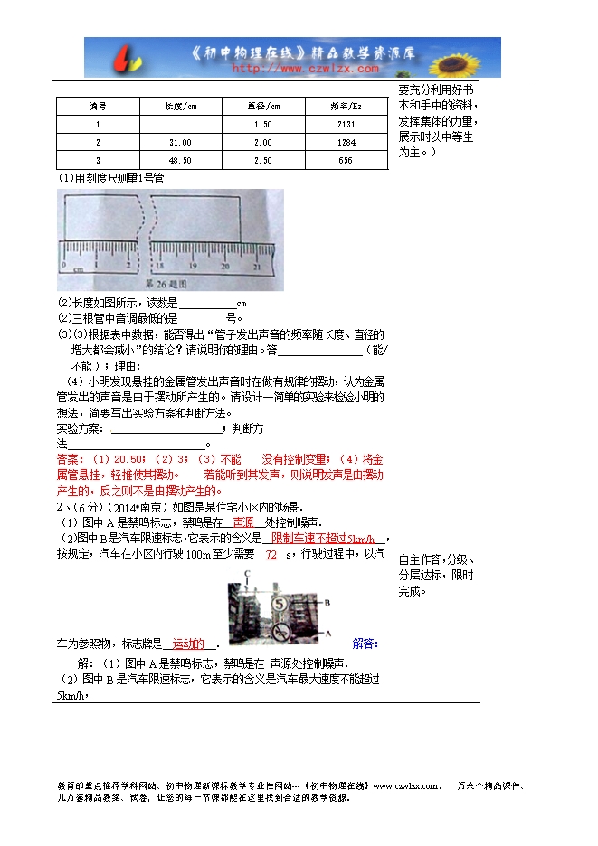 2.知道乐音的三要素:音调、响度、音色(包括音调、响度分别与振动的频率和振幅有关等)。