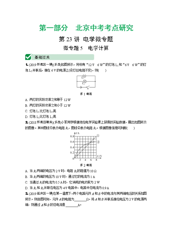 3、如图1所示,电学实验箱m内有一个电压为6V的电源,箱体上有A、B、C三个接线柱,现在把一个20Ω和一个40Ω的电阻及一些导线,用各种不同的连接方式在箱内连接成通路(电阻只能连在接线柱之间),用电压表测量各种情况下AB之间的电压值,请填电压表两种可能读数:(1) V;(2) V。