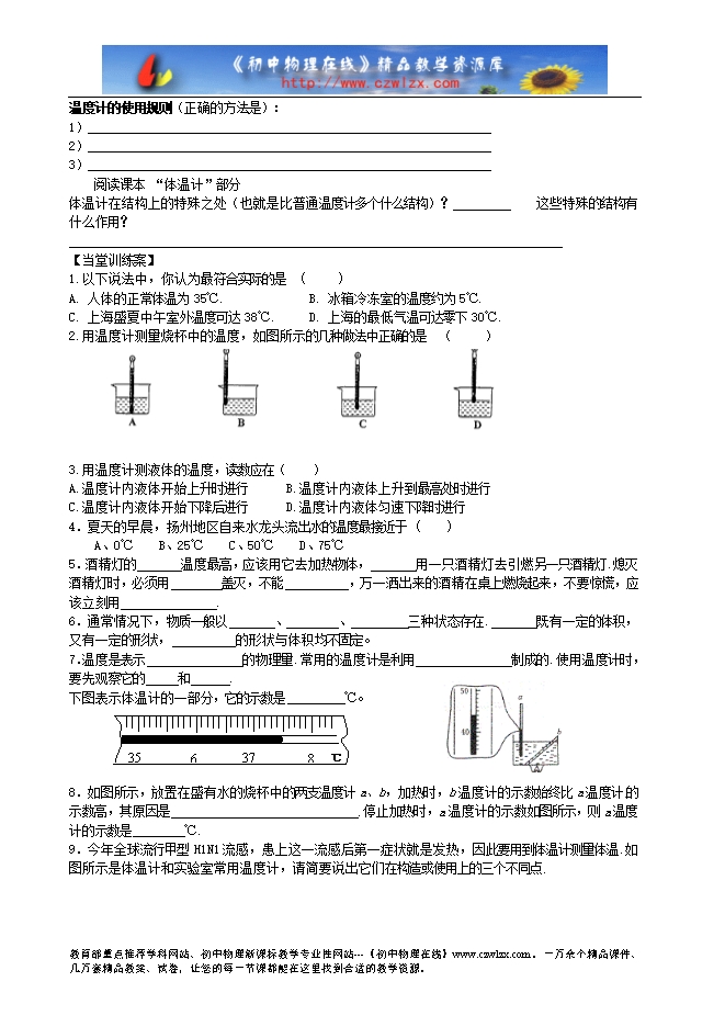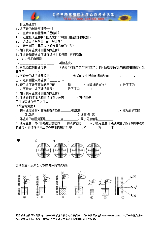 师:物理学中,把物体的冷热程度叫做温度。(多媒体显示)