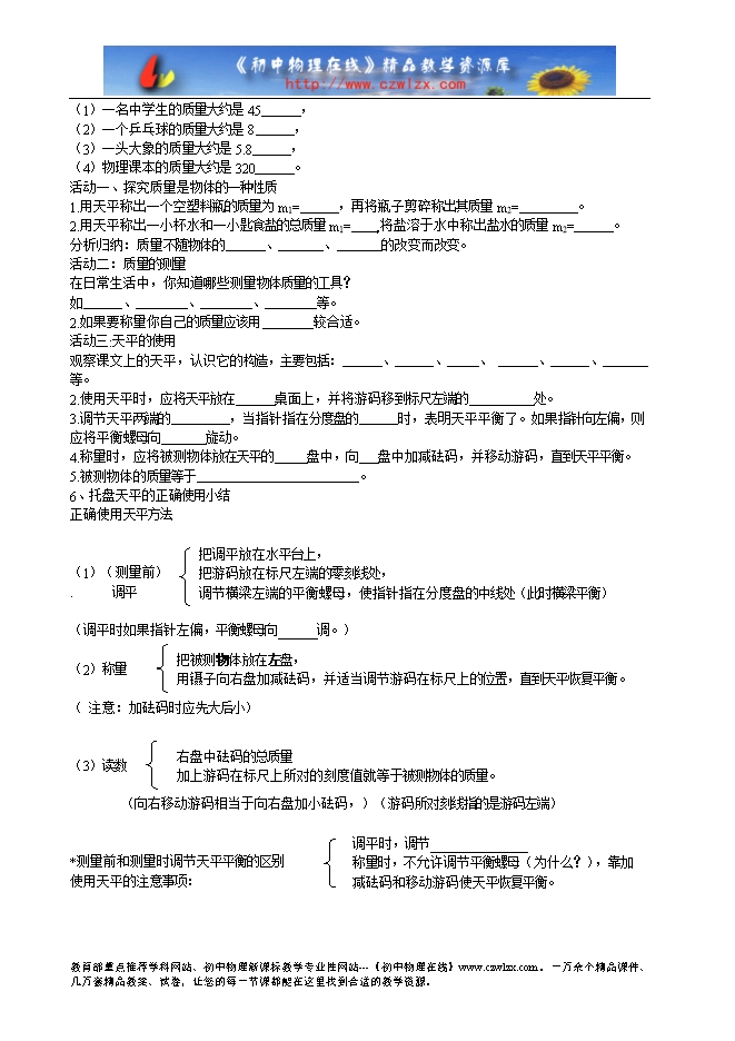 ⒉通过实验、观察认识到质量是物体的一个基本属性。
