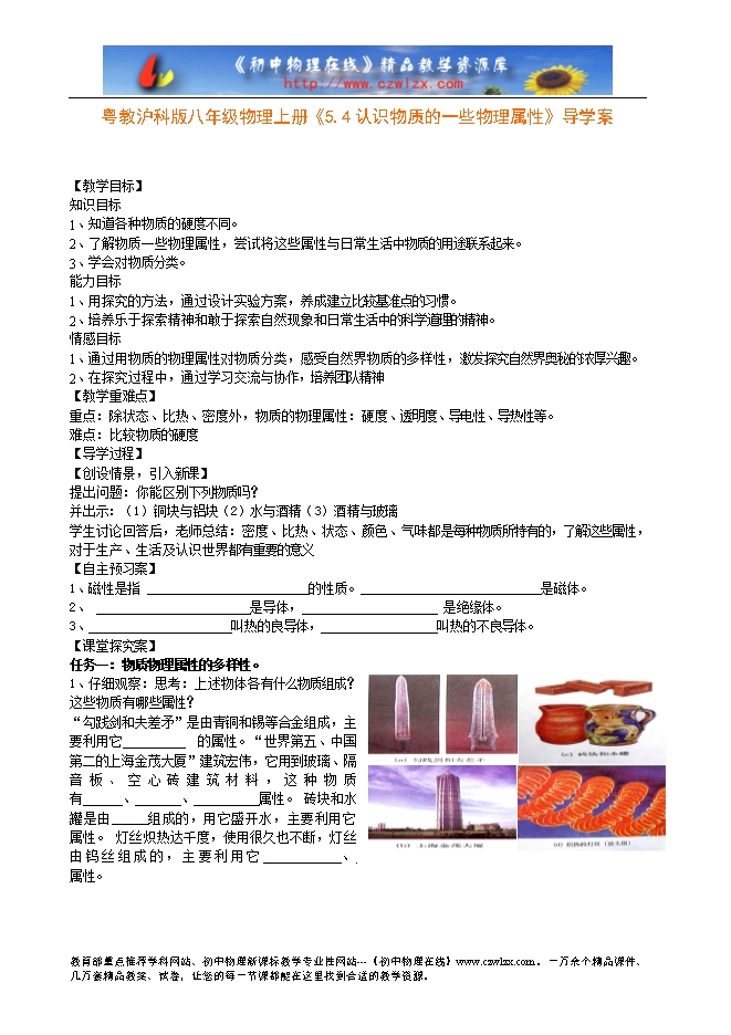 粤教沪科版八年级物理上册《5.4认识物质的一些物理属性》导学案