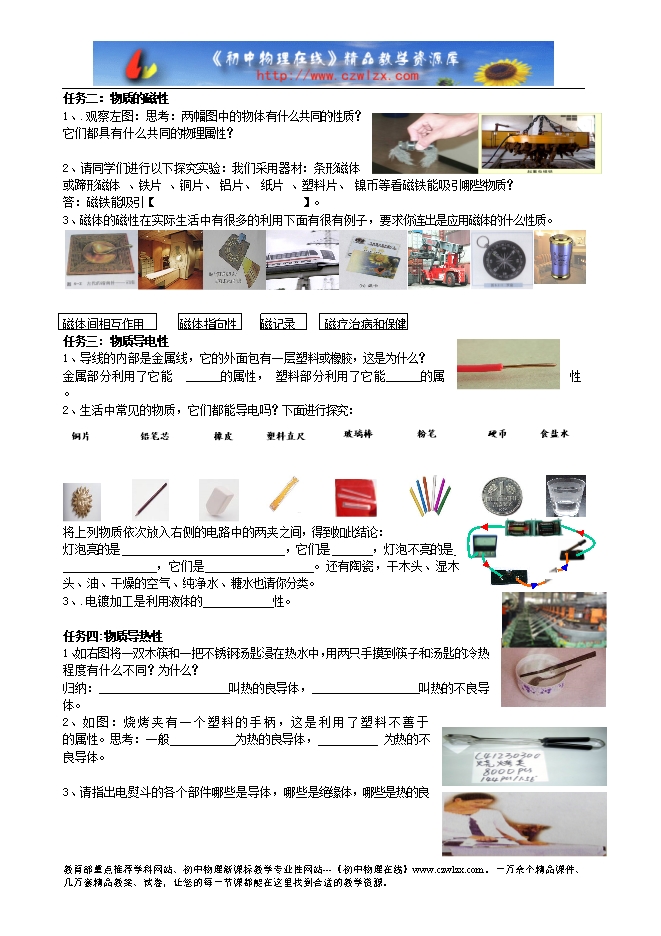 2、了解物质一些物理属性,尝试将这些属性与日常生活中物质的用途联系起来。