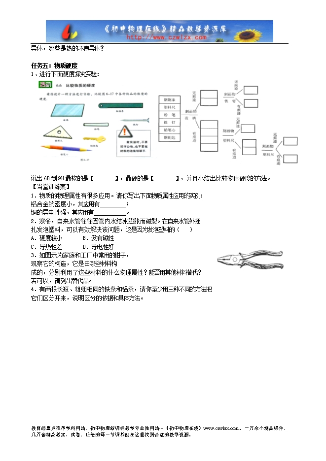 重点:除状态、比热、密度外,物质的物理属性:硬度、透明度、导电性、导热性等。