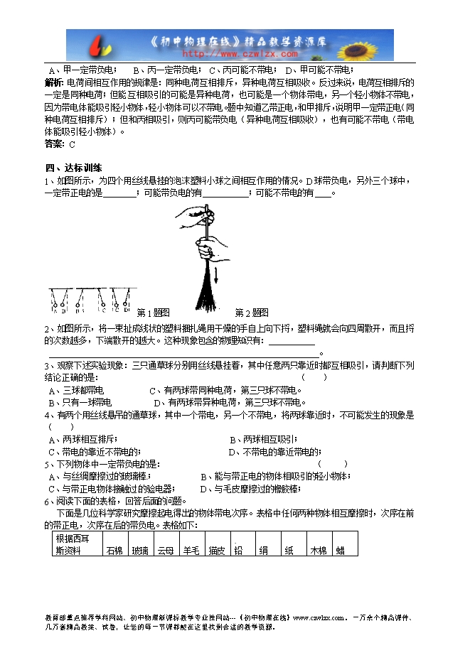 (3)丝绸摩擦过的玻璃棒和毛皮摩擦过的橡胶棒相互靠近时,它们之间发生相互 的现象。