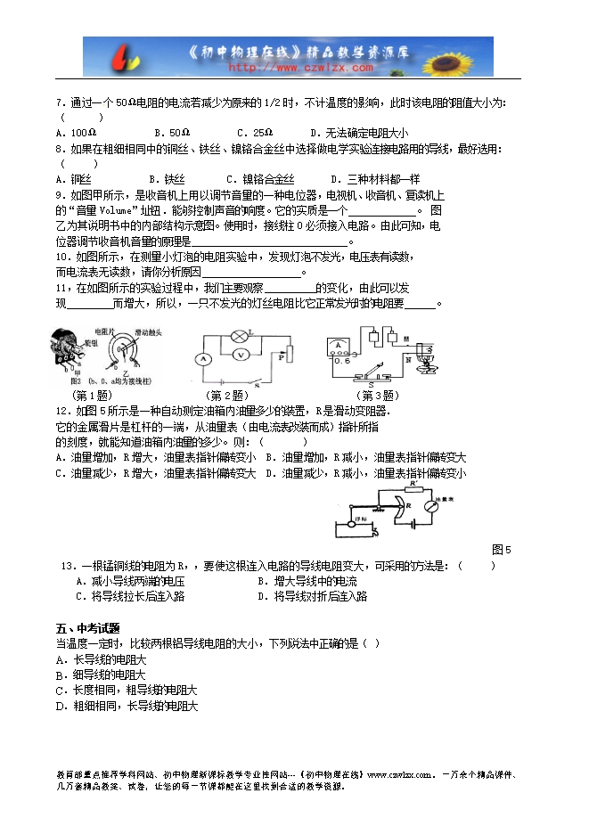 1、猜想:电阻的大小可能与_________________________________________________有关。
