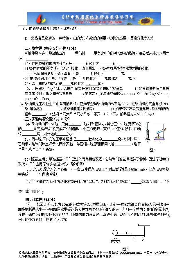 4. 如图2所示是热机工作的一个冲程,则下列说法正确的是( C )