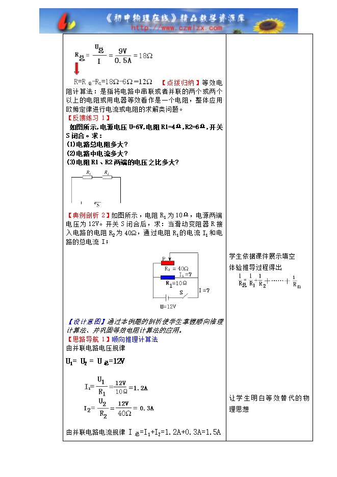 2、通过推导串并联电路电阻关系的学习过程,学习运用理论推导得出物理规律的方法。