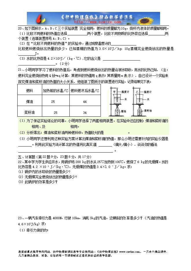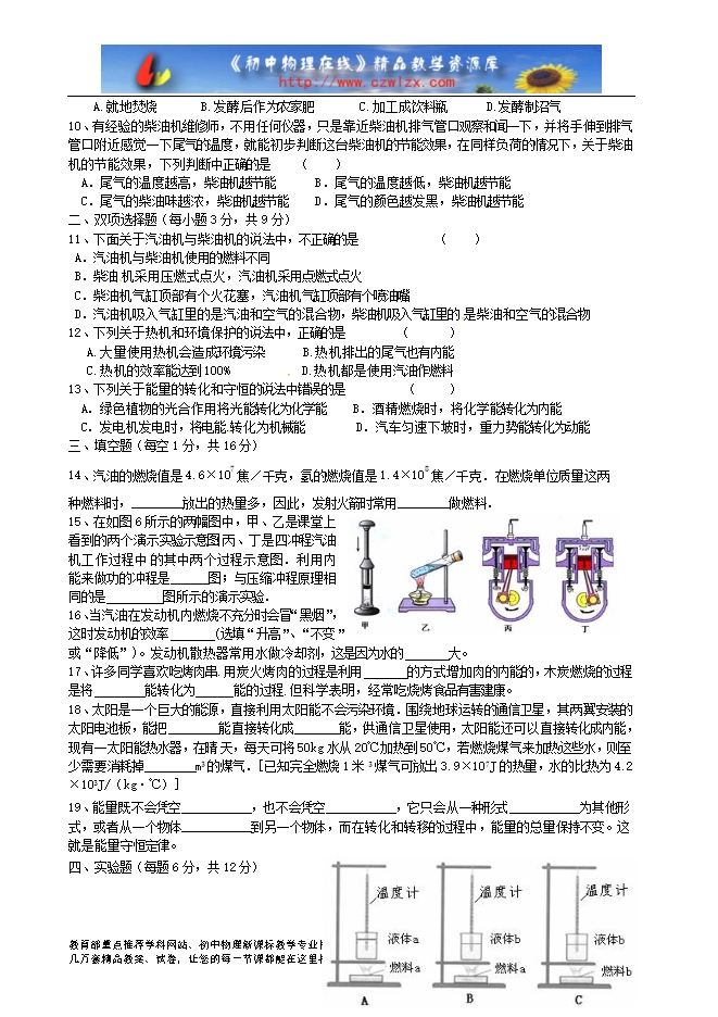 6、甲乙两台柴油机,甲的效率低于乙的效率,意义是 ( )