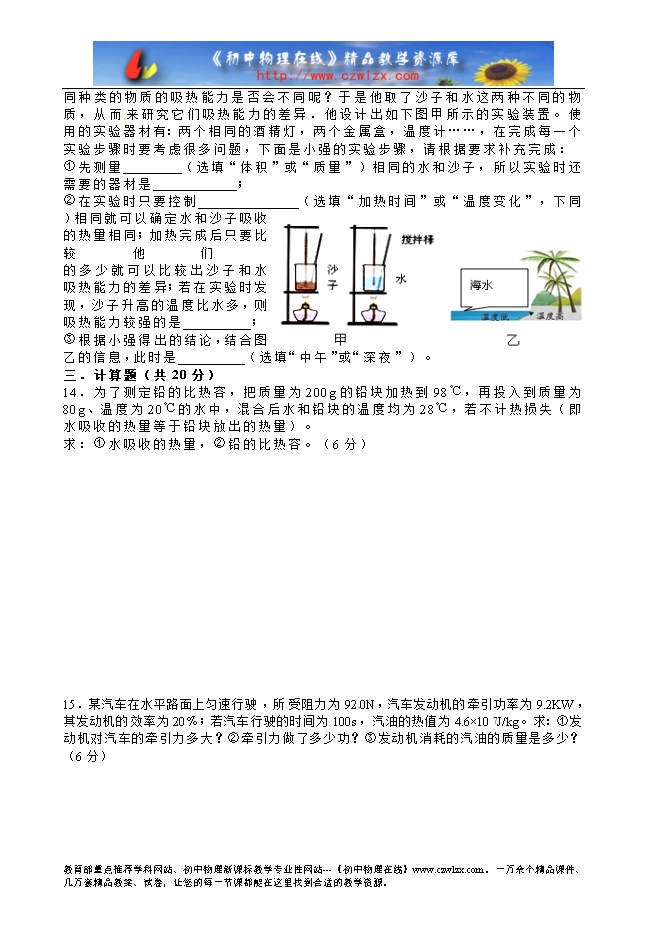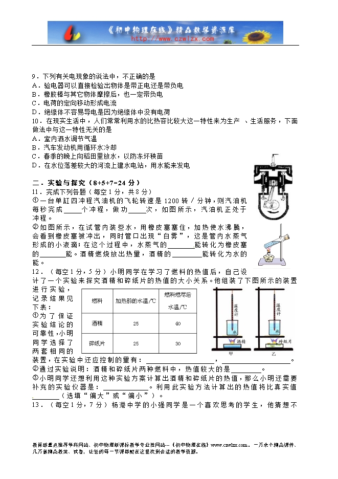 - 20942015-2016年上期武汉市青锋中学九年级9月考物理试题及答案