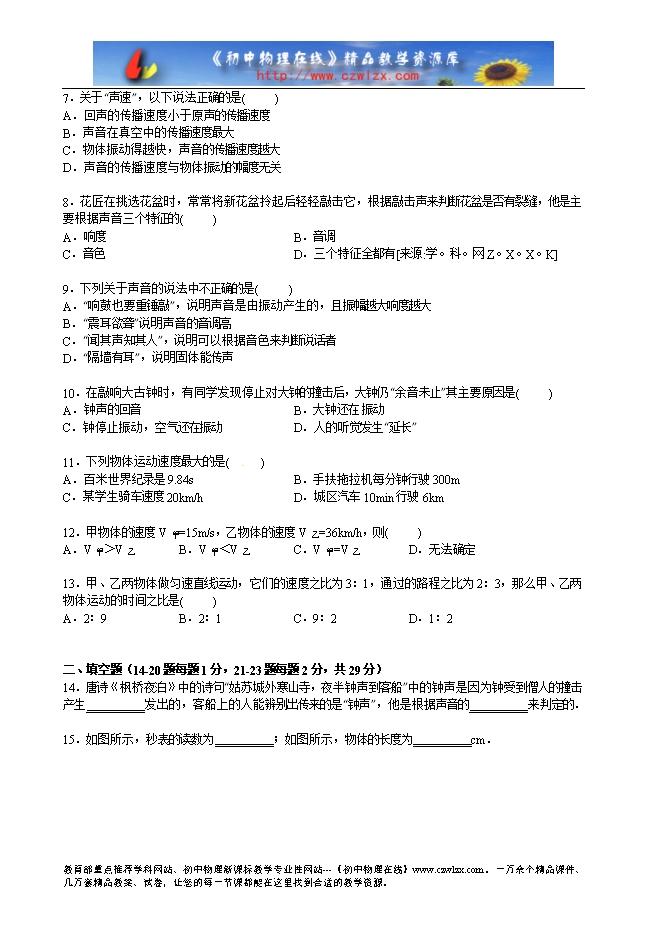 点评:本题是一道综合题,主要考查学生对声音的传播条件以及声音的传播速度的了解.