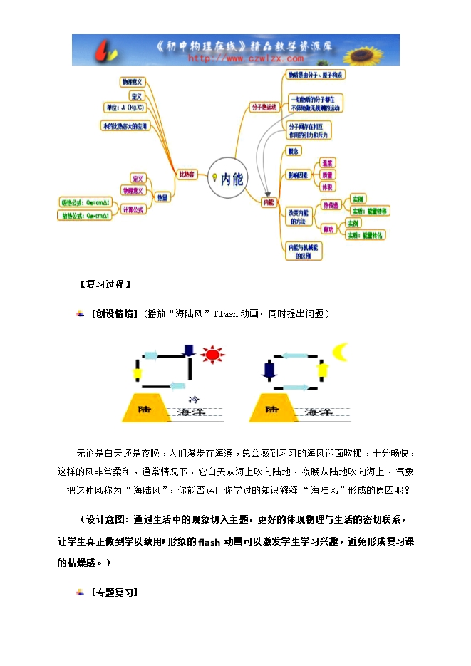 [创设情境] (播放“海陆风”flash动画,同时提出问题)